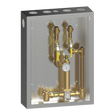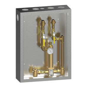 Lawler's 86004 Cabinet with 802 High-Low Thermostatic Mixing Valve provides tempered water over a wide range of flows in a single valve unit. Ideally suited for institutional and commercial applications such as group showers, schools, hotels, hospitals, prisons, and nursing homes. The 802 will provide from 2 to 80 gpm @ 45 psi (1/2 gpm when properly installed in a recirculated system). This valve provides three-way protection from scalding upon: 1) failure of the thermostat, 2) shut-off of hot water, or 3) shut-off of cold water. This one piece, single body valve contains a liquid filled thermostat, a stainless steel piston and liner, and is ASSE 1017 and CSA B125.3 approved. This single valve is easier to install, easier to maintain and more cost efficient than multi-valve systems on the market.