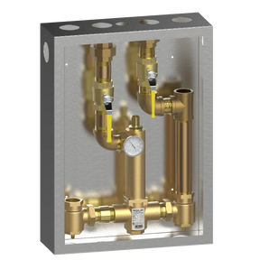 Lawler's 86104 Cabinet with 805 High-Low Thermostatic Mixing Valve provides tempered water over a wide range of flows in a single valve unit. Ideally suited for institutional and commercial applications such as group showers, schools, hotels, hospitals, prisons, and nursing homes. The 805 will provide from 5 to 200 gpm @ 45 psi (1/2 gpm when properly installed in a recirculated system). This valve provides three-way protection from scalding upon: 1) failure of the thermostat, 2) shut-off of hot water, or 3) shut-off of cold water. This one piece, single body valve contains a liquid filled thermostat, a stainless steel piston and liner, and is ASSE 1017 and CSA B125.3 approved. This single valve is easier to install, easier to maintain and more cost efficient than multi-valve systems on the market.