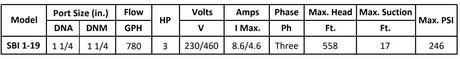 Gol Vertical Multistage Centrifugal In-Line Pumps - SBI 1-19 KW2.2 3PH 230,460 V 60HZ IE3