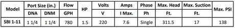 Gol Vertical Multistage Centrifugal In-Line Pumps - SBI 1-11 KW1.1 1PH 230,240 V 60HZ IE3