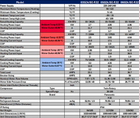 ARCTIC-HP-060ZA/BE-R32 60,000 BTU Air to Water Heat Pump
