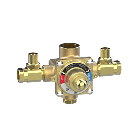 Lawler 1/2" Piped Thermometer Ball Valve Dual Out Shower Valve 85004