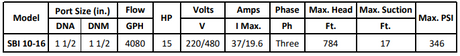Gol Vertical Multistage Centrifugal In-Line Pumps - SBI 10-16 KW11 3PH 230,480 V 60HZ IE3