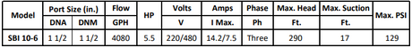 Gol Vertical Multistage Centrifugal In-Line Pumps - SBI 10-6 KW4 3PH 230,480 V 60HZ IE3
