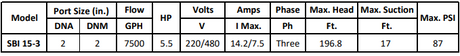 Gol Vertical Multistage Centrifugal In-Line Pumps - SBI 15-4 KW5.5 1PH & 3PH 230,480 V 60HZ IE3