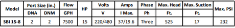 Gol Vertical Multistage Centrifugal In-Line Pumps - SBI 15-5 KW7.5 3PH 230,480 V 60HZ IE3