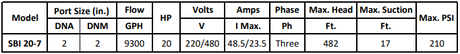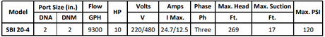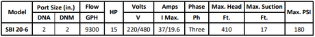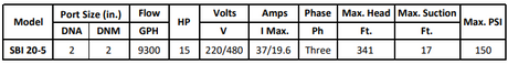 Gol Vertical Multistage Centrifugal In-Line Pumps - SBI 20-7 KW15 3PH 230,480 V 60HZ IE3