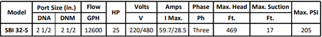 Gol Vertical Multistage Centrifugal In-Line Pumps - SBI 32-9 KW30 3 PH 460V 60HZ IE3