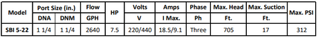 Gol Vertical Multistage Centrifugal In-Line Pumps - SBI 5-22 KW5.5 3PH 230,440 V 60HZ IE3
