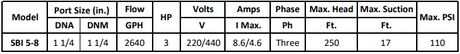 Gol Vertical Multistage Centrifugal In-Line Pumps - SBI 5-8 KW2.2 3PH 230,440 V 60HZ IE3