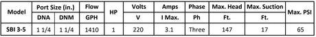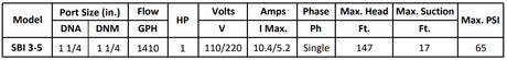 Gol Vertical Multistage Centrifugal In-Line Pumps - SBI 3-5 KW0.75 1PH 110,220 & 3PH 220 V 60HZ IE3