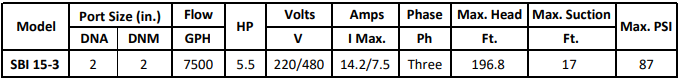 Gol Vertical Multistage Centrifugal In-Line Pumps - SBI 15-3 KW4 3PH 230,480 V 60HZ IE3
