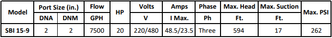 Gol Vertical Multistage Centrifugal In-Line Pumps - SBI 15-9 KW15 3PH 230,480 V 60HZ IE3 is backordered and will ship as soon as it is back in stock.