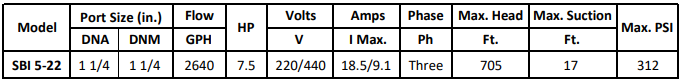 The Gol Pumps SBI 5-22 is a durable, high-performance electric motor designed to meet the needs of demanding commercial, agricultural, and industrial systems. Powered by a 5.5 kW IE3 premium-efficiency motor, this model runs on three-phase (3 PH) 230/440V, 60Hz, offering robust and reliable performance in a wide range of applications.