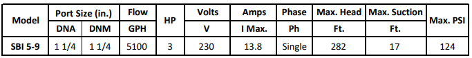 The SBI 5-9 (3 PH) version runs on 230/440V, 60Hz, built to deliver reliable, continuous-duty performance in more robust industrial applications.