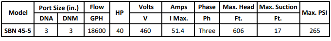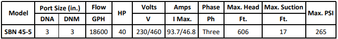 The Gol Pumps SBN 45-5 is a high-capacity, stainless steel electric pump motor engineered for continuous-duty operation in industrial, commercial, and sanitary environments. Equipped with a 30 kW IE3-rated motor, this model delivers robust, energy-efficient performance on 460V, 60Hz three-phase power, making it ideal for high-flow, high-pressure systems.