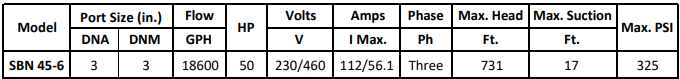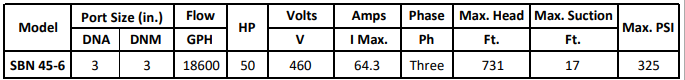 The Gol Pumps SBN 45-6 is an industrial-grade, high-output electric pump motor designed for continuous-duty operation in the most demanding fluid handling environments. Equipped with a 37 kW IE3-rated motor, this model delivers exceptional power and energy efficiency on 460V, 60Hz three-phase power, making it ideal for large-scale, high-pressure applications.