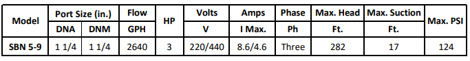 The Gol Pumps SBN 5-9 is a stainless steel electric pump motor designed for high-performance operation in sanitary, industrial, and commercial environments. This 2.2 kW IE3-rated model runs on 230/480V, 60Hz three-phase power, delivering exceptional energy efficiency, durability, and reliable performance in continuous-duty applications.