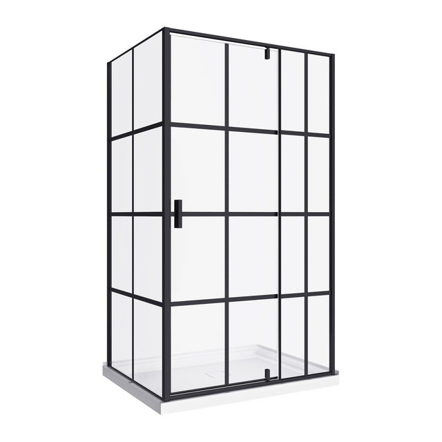 The 48x36 Matt black corner shower pivot door and base is a swing shower door designed in step with modern market trends. It has a stylish window pane look, with a matte black finish that is bold and striking in any bathroom with clean lines, modern accents and an upscale look, this shower and base add timeless style to any bathroom space.