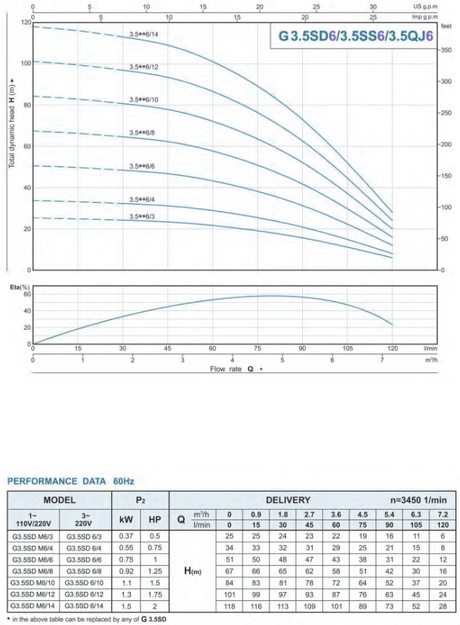 Gol Thin Submersible Pumps - 3.5" Submersible Pump 3wire 3.5SDM0 6/6 110V & 220V 60 Hz