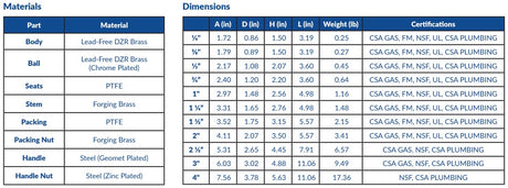 AV MILANO - Lead Free Ball Valve NPT CSA/UL/FM/NSF (G102T 1/4" - 4") Box Qty: 2 - 80