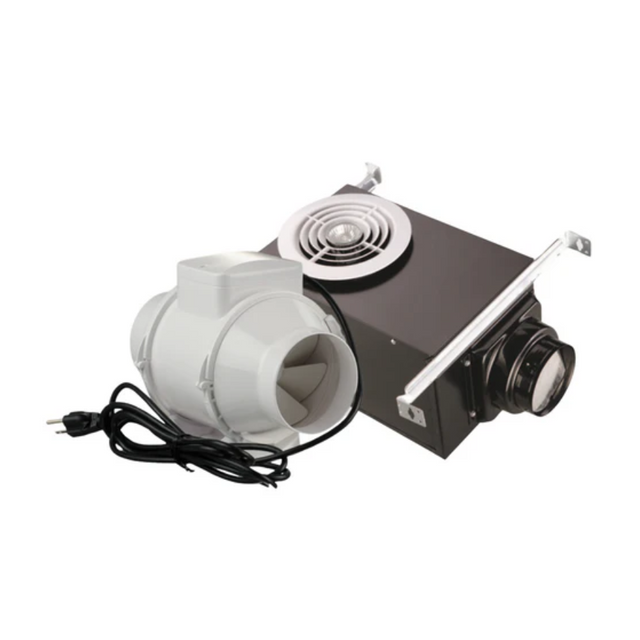 Each kit includes a sleek ceiling diffuser with an integrated LED light, paired with a high-performance two-speed selectable Turbo Tube Silent Series fan. Built with a durable galvanized steel housing, backdraft damper, and secure mounting brackets, this kit delivers reliable and energy-efficient ventilation that lasts.