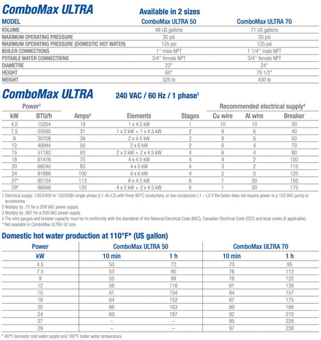 ComboMax ULTRA 50 - Electric Boiler & Instant Hot Water Heater: 4.5 kw – 24 kW